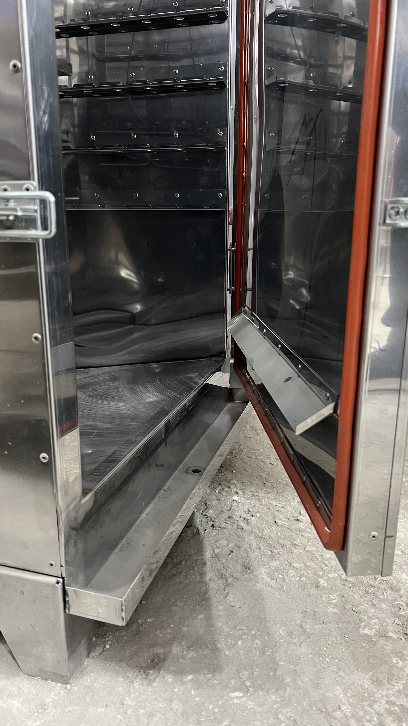 Размеры камеры внутри: -ширина 750мм -глубина 550мм -высота 1800мм Камера на 742 литра Обшитая с наружи нержавейкой , стенка толщиной 40мм утеплена каменной ватой 4см , что позволяет работать при минусовых температурах. Хорошо справляется с сушкой, варкой и копчением. Оборудована : -щитовой 380в (потребление камеры 8кВт + парогенератор 2кВт) -прибором на 2 датчика: t°продукта и t°камеры, (камера отключается при достижении заданной температуры) - 2мя форсунками для душифрования и мойки камеры (можно дополнительно укомплектовать насосом повышения давления) -кассетным дымогенератором (маx дымление кассеты не более 2 часов) -парогенератором (маx время работы парогенератора при максимальном наполнении не более 1,5 часа) - 20 шампуров - 40 крючков - 2 отвода и труба 50см для дымогенератора. - гофра 1,5 метра Стоимость указана за полную комплектацию